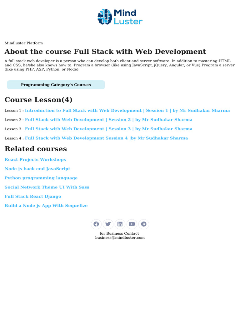Lesson 1 : Introduction to Full Stack with Web Development | Session 1 | by Mr Sudhakar Sharma