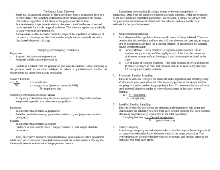 Slovin’s Formula: ∙ This can be done by listing all the elements in the population and selecting every