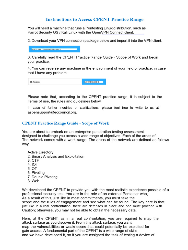 3. Carefully read the CPENT Practice Range Guide - Scope of Work and begin