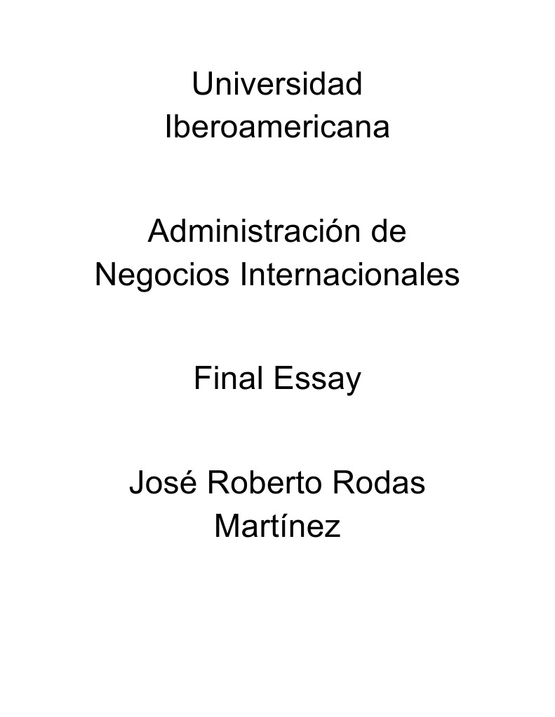 Universidad Iberoamericana Administracin de Negocios Internacionales Final Essay Jos Roberto Rodas Martnez