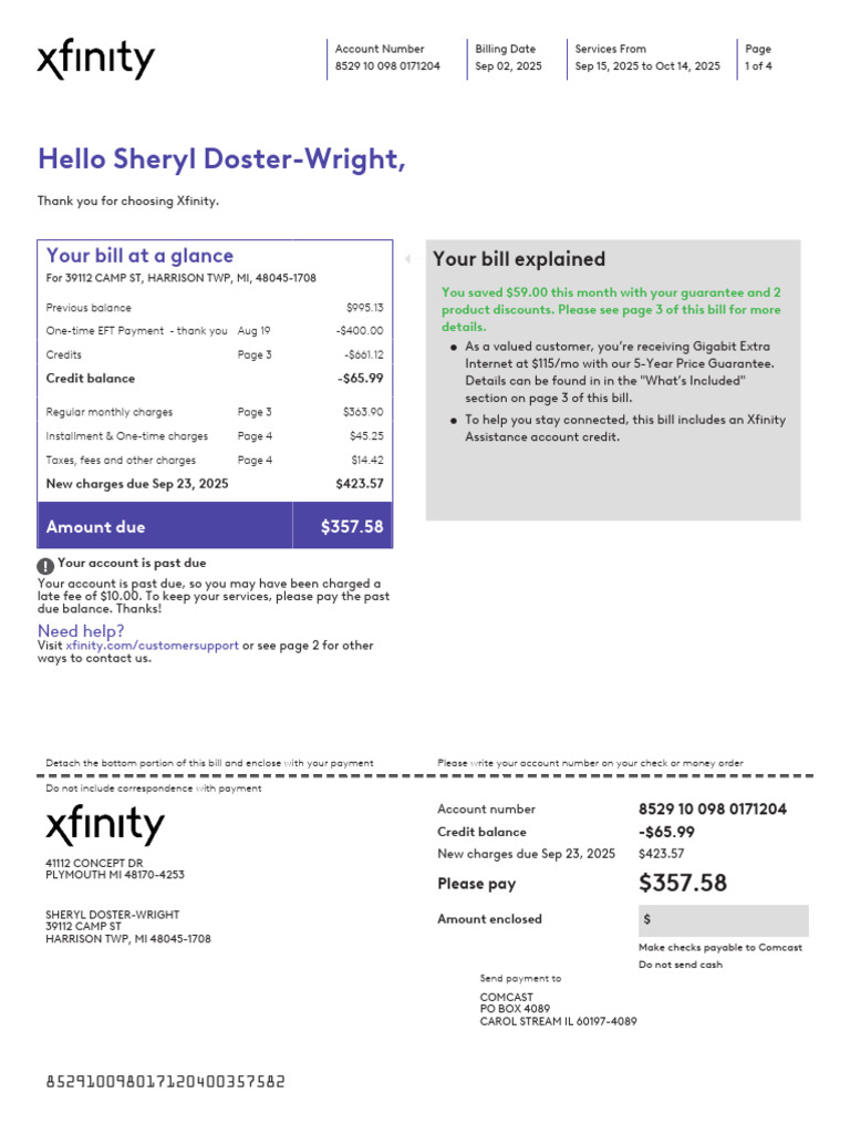 Make checks payable to Comcast