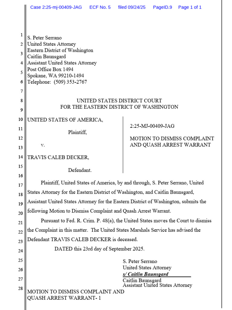 18 States Attorney for the Eastern District of Washington, and Caitlin Baunsgard,