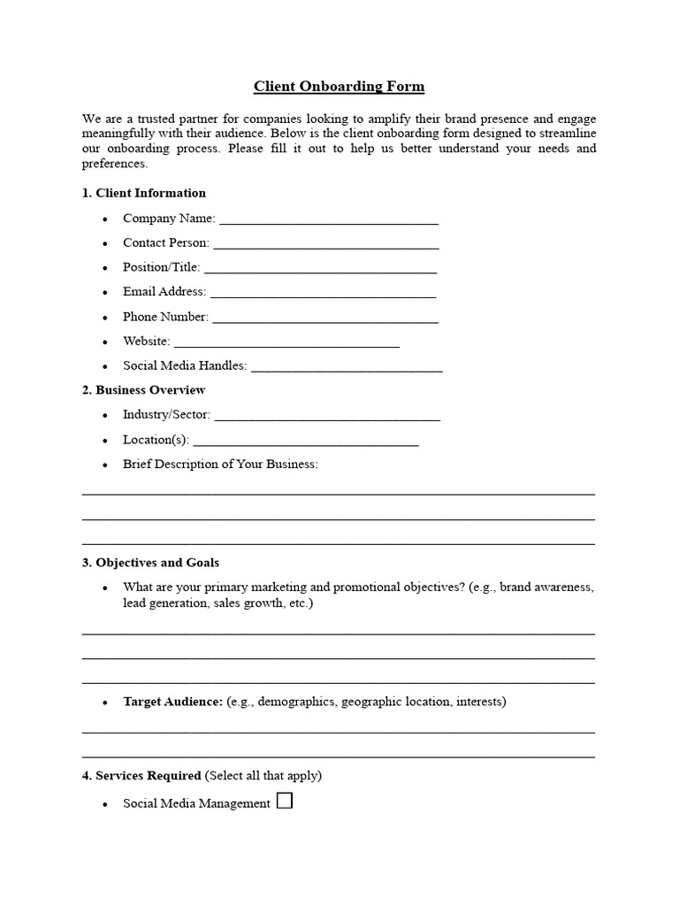 meaningfully with their audience. Below is the client onboarding form designed to streamline