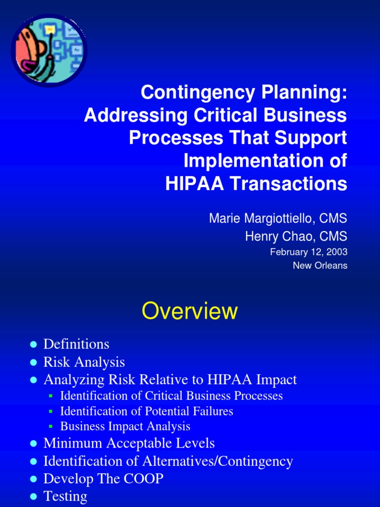 Contingency Planning: Addressing Critical Business Processes That Support Implementation of HIPAA Transactions