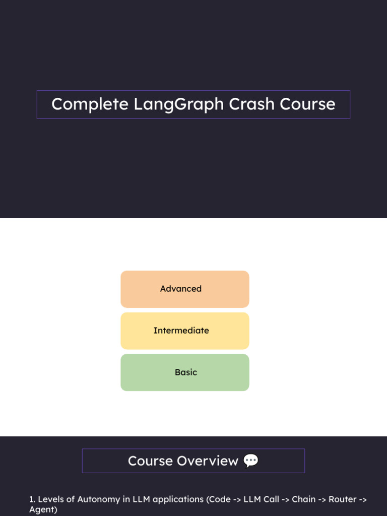 1. Levels of Autonomy in LLM applications (Code -> LLM Call -> Chain -> Router ->