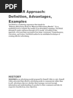 Communication Process in DAGMAR Approach The model suggests that before the acceptance of a product by an individual, there is a series of mental steps which the individual goes through. At some point of time, the individual will be unaware of the product or offer in the market. The initial communication task of the advertising activity is to increase consumer awareness of the product or offer. The second step of the communication process is comprehension of the product or offer and involves the target audience learning something about the product or offer. What are its specific characteristics and appeals, including associatied imagery and feelings? In what way does it differ from its competitors? Whom is it supposed to benefit? The third step is the attitude (or conviction) step and intervenes between comprenension and final action. The action phase involves some overt move on the part of the buyer such as trying a brand for the first time, visiting a showroom, or requesting information. The whole communication process is a bit more complex. And under different circumstances, it may differ slightly, but the the basic concept revolves around what is mentioned in the paragraphs above. The DAGMAR approach