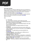 Basic UNIX commands the system) how much time you have left to sort them out (by deleting or gzipping some, or moving them to your own computer). du filename --- shows the disk usage of the files and directories in filename (without argument the current directory is used). du -s gives only a total. last yourusername --- lists your last logins. Can be a useful memory aid for when you were where, how long you've been working for, and keeping track of your phonebill if you're making a non-local phonecall for dialling in.