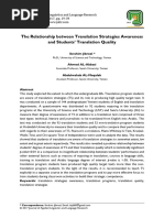 Exploration in Translation Strategies by Dr. Ali R. Al-Hassnawi Language & Translation Expert of OAC Traditionally, translation has beenand is still beingtaught as an autonomous academic subject. This is at least the situation in most of the Arab academic institutions where translation teaching is deprived of the implications, approaches, findings and insights of foreign language teaching practices. Being fully aware of distinction between the two fields, I would argue in favor of integrating foreign language teaching programs with those of professional translators' training for the benefit of both. This argument of integration is based on the thesis that foreign language learners and professional translation trainees develop similar hypotheses about their tasks and pass through similar transitional stages of linguistic development and production. Collectively, the former is called 'Interlanguage' while the latter is what I would like to call 'Translanguage'. Based on this thesis, fruitful integration between programs of foreign language teaching and professional translators' training may occur. 1. Introduction: The debate on the interaction between foreign language (FL) learning and translation as two bilingual processes has been going on since the establishment of these two endeavors as intellectual disciplines. It has often been based on the assumption that translation is an inevitable instinctive part of the way the mind approaches a FL while a translator seeks to go further into the target language (TL) than what the learner wants to do into the FL. Also, and despite the fact that both the FL learner and translator are moving towards the same target, there is a very crucial difference between the two: FL learners move along a transitional (constantly variable) continuum in search of being competent bilinguals. By contrast, a translator has already reached that destination of being a competent bilingual proxy who carries out the task of connecting the target language (TL) reader to the source text (ST). Providing empirical evidence to this statement constitutes one of the objectives of this paper. By analyzing several samples of FL learners' and translators' products, it would become obvious that both practitioners move along the same communicative continuum, though having different intentions, falling under dissimilar conditions and pressures and paying off different loyalties.