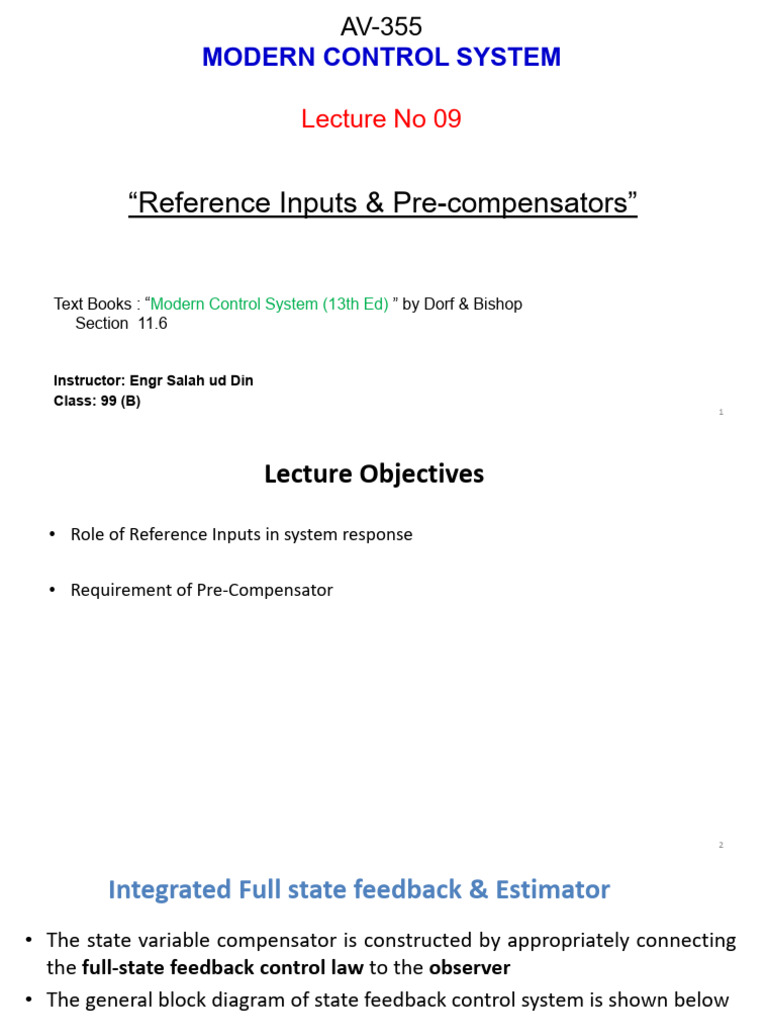 Text Books : “Modern Control System (13th Ed) ” by Dorf & Bishop