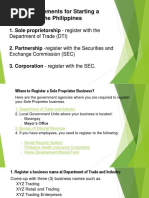 DTI (for sole proprietorships) or SEC/CDA (for partnerships, corporations,