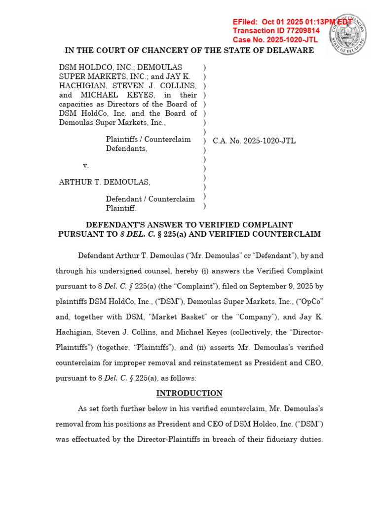 terminated Mr. Demoulas on September 9, 2025, just minutes after