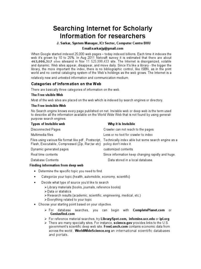 Searching Internet for Scholarly Information for researchers