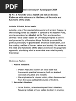 Is the agency or instrumentality though which the will of the state is formulated, expressed and realized Refers to the person or aggregate of those persons in whose hands are placed for the time being the function of political control Classifications or forms of Government 1) As to number of persons exercising sovereign powers Monarchy Aristocracy Democracy I. Monarchy Powers of government are vested in a single person a) Absolute Monarchy The ruler rules by divine right