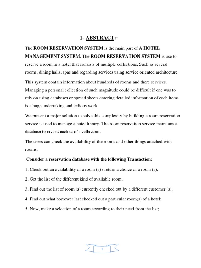 1. ABSTRACT:The ROOM RESERVATION SYSTEM is the main part of A HOTEL MANAGEMENT SYSTEM.
