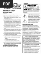 RISK OF ELECTRIC SHOCK DO NOT OPEN WARNING: TO REDUCE THE RISK OF FIRE OR ELECTRIC SHOCK, DO NOT EXPOSE THIS APPARATUS TO RAIN OR MOISTURE. TO REDUCE THE RISK OF ELECTRIC SHOCK, DO NOT REMOVE COVER. NO USER-SERVICEABLE PARTS INSIDE. REFER SERVICING TO QUALIFIED SERVICE PERSONNEL.