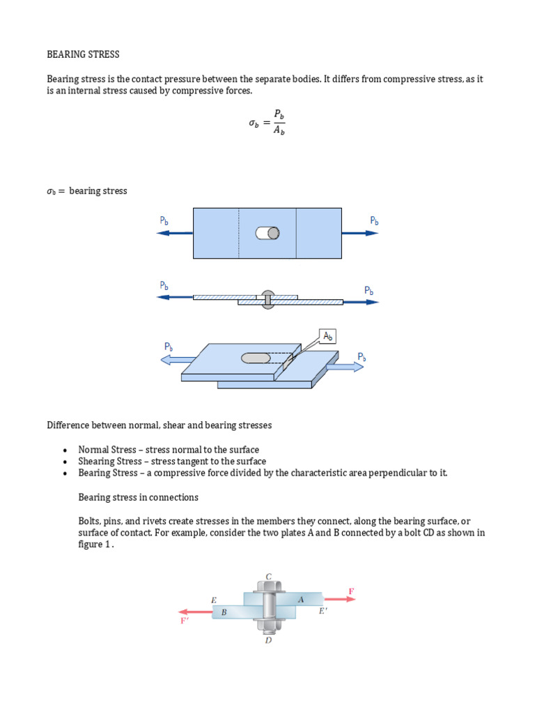 Bearing Stress – a compressive force divided by the characteristic area perpendicular to it.