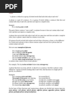 The grammatical term Verb can be used to refer to a class of words like: Be , happen , & kill It is also used to refer to one part of a clause or sentence. (Sometimes it is referred to as verb phrase).