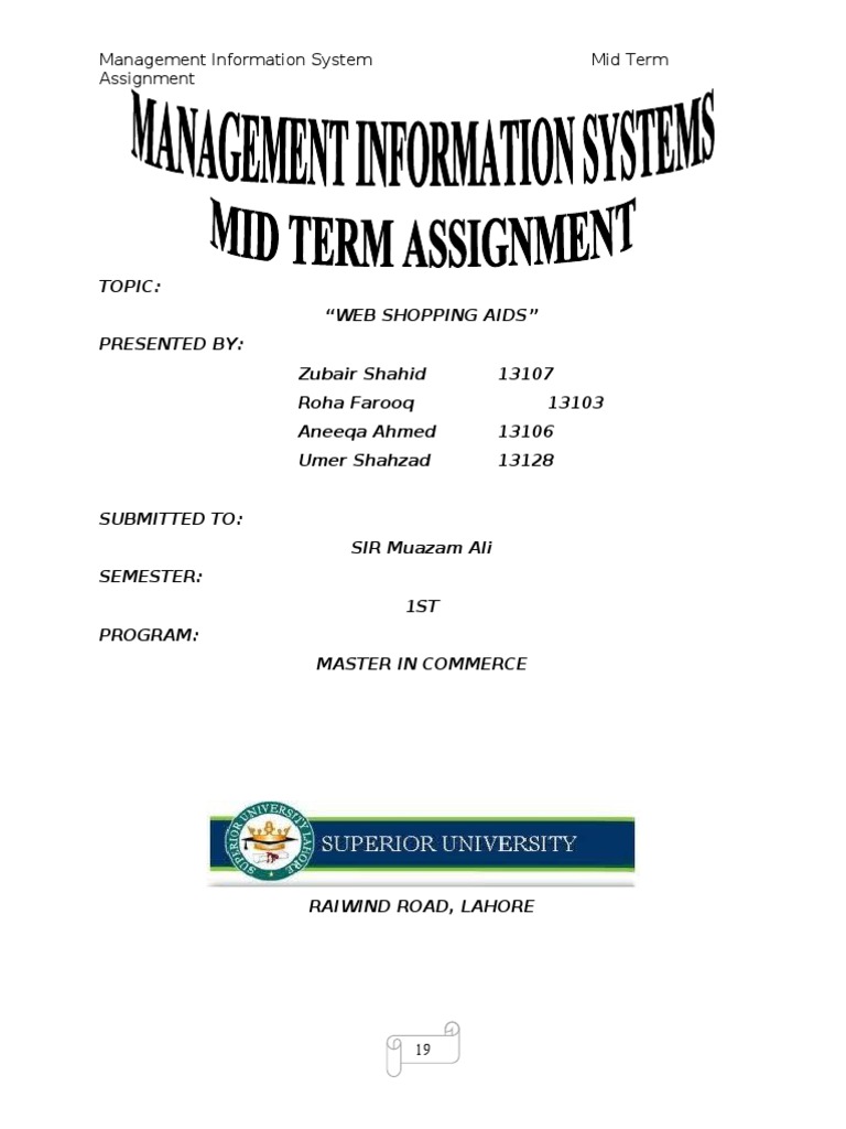 Management Information System Mid Term Assignment purchase altogether or have lost track of the relevant contact information and have no way to follow up. Literally, millions of dollars remain unclaimed each year! {8}. This is where Rebate-Tracker.com comes in. Sign up for an account and enter the relevant details every time you submit a rebate. The web site will organize your submissions, keep track and report on the money you are owed, and will even send you reminders when your rebates are due. Give it a try, it costs nothing, and will likely put a few dollars back in your wallet!