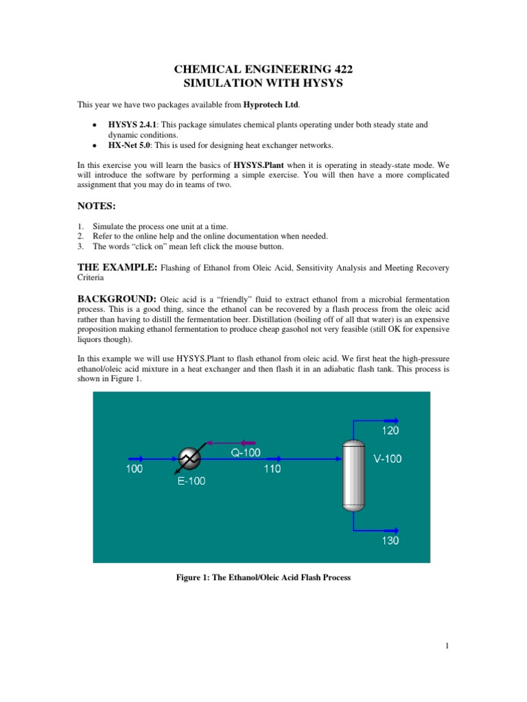 CHEMICAL ENGINEERING 422 SIMULATION WITH HYSYS