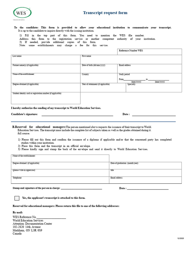 To the candidate: This form is provided to allow your educational institution to communicate your transcript.