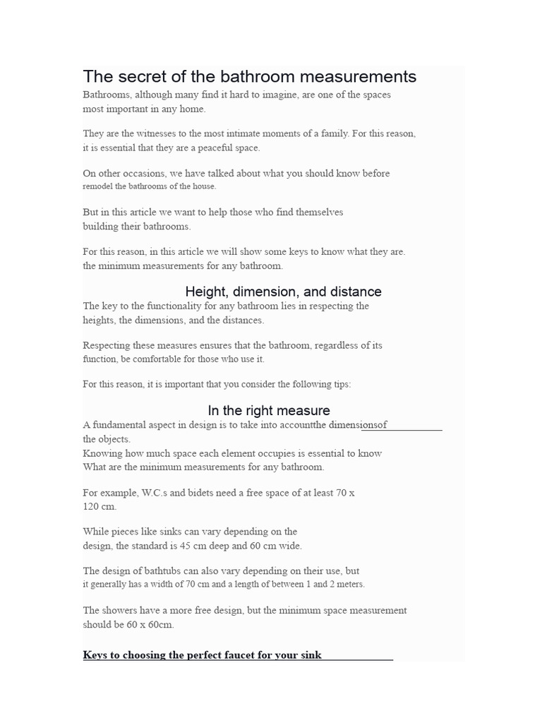 Something that works in favor of the circulation of a bathroom isthe distanceof