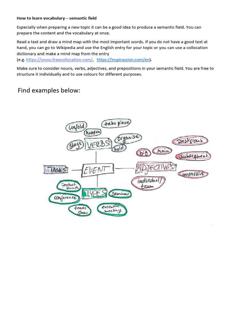 Especially when preparing a new topic it can be a good idea to produce a semantic field. You can