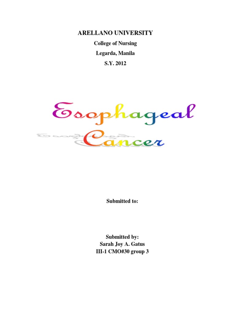 The incidence of esophageal cancer is on the rise with over 2,000 Filipinos and 12,000 Americans developing this disease each year .Variations in the incidence of esophageal cancer are seen with age, sex, and race. Advances in medical and surgical therapy have led to improvement in the survival rates but continued improvement in survival is dependent on a better understanding of the relationship between environmental factors and the disease itself. The incidence of esophageal cancer fluctuates dramatically throughout various regions of the world and has the largest variability of any known malignancy. High rates are found in people living in northeast China to north central Asia, Afghanistan and northern Iran. Other high-risk groups include the white population in parts of South Africa and areas of Finland, Iceland, and France. In the United States, trends demonstrate that black men have a fourfold greater incidence than white men for squamous cell esophageal cancer with significant variation in locale, nutritional status, socioeconomic status, and alcohol and cigarette use. Esophageal cancer is malignancy of the esophagus. It is a typically carcinomas which arise from the epithelium, or surface lining, of the esophagus. Most esophageal cancers fall into one of two classes: squamous cell carcinomas, which are similar to head and neck cancer in their appearance and association with tobacco and alcohol consumption, and adenocarcinomas, which are often associated with a history of gastroesophageal reflux disease and Barrett's esophagus. A general rule of thumb is that a cancer in the upper twothirds is a squamous cell carcinoma and one in the lower one-third is a adenocarcinoma. Rare histologic types of esophageal cancer are different variants of the squamous cell carcinoma, and non-epithelial tumors, such as leiomyosarcoma, malignant melanoma, rhabdomyosarcoma, lymphoma and others. Signs and Symptoms