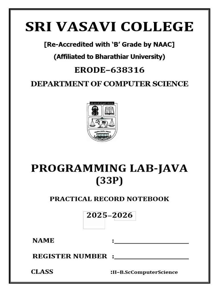 II-B.Sc Computer Science for Core Lab 4: Programming Lab-JAVA (33P)