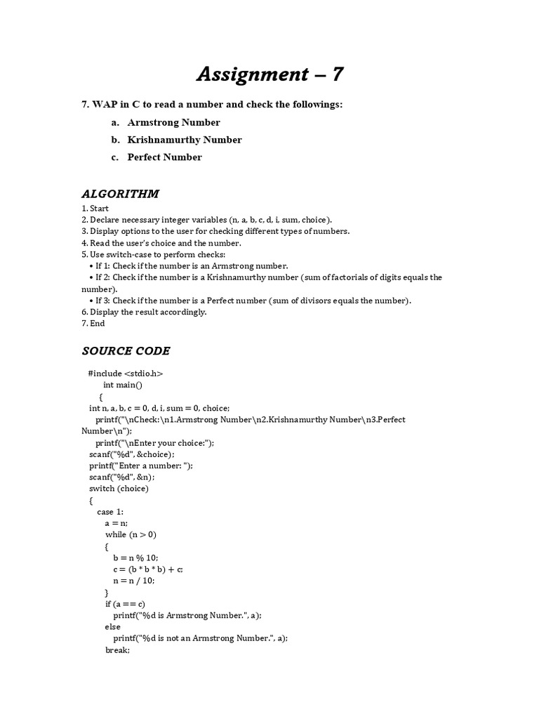 Krishnamurthy number, or Perfect number. It demonstrates the use of switch-case, loops, and
