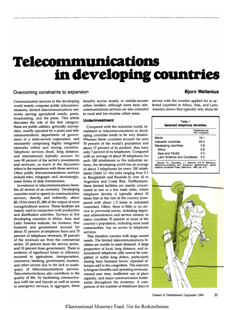 the public telecommunications enterprises Bjorn Wellenius nomic, and technical issues that must be