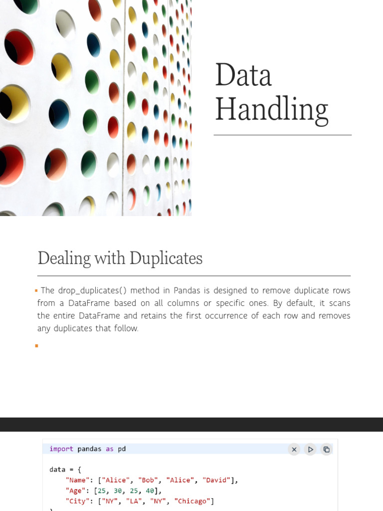 ▪ The drop_duplicates() method in Pandas is designed to remove duplicate rows