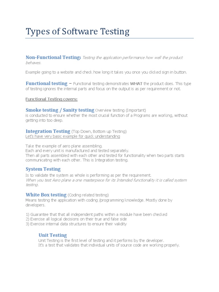 Functional testing demonstrates WHAT the product does. This type of testing ignores the internal parts and focus on the output is as per requirement or not. Functional Testing covers: