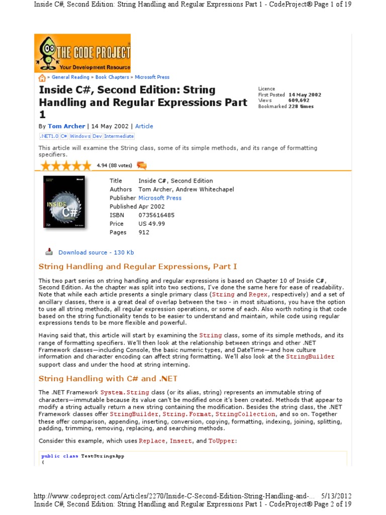 Inside C#, Second Edition: String Handling and Regular Expressions Part 1 - CodeProject Page 2 of 19