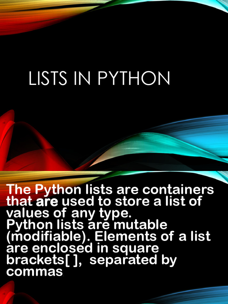 L6=[1,2,’a’,”apple”,56.89] #list of mixed data types