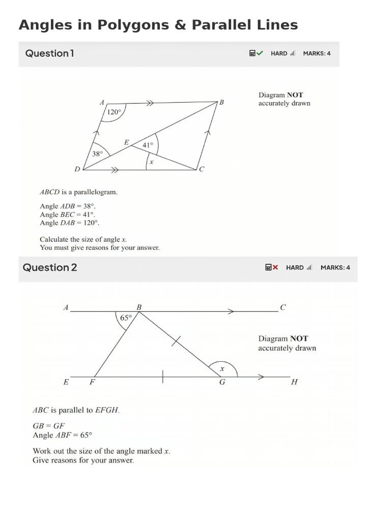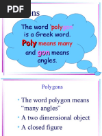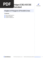 The document discusses the properties of angles in polygons and their relationships with parallel lines. It likely covers the rules for calculating interior and exterior angles in various types of polygons. Additionally, it may explain how parallel lines interact with transversal lines to form corresponding and alternate angles.