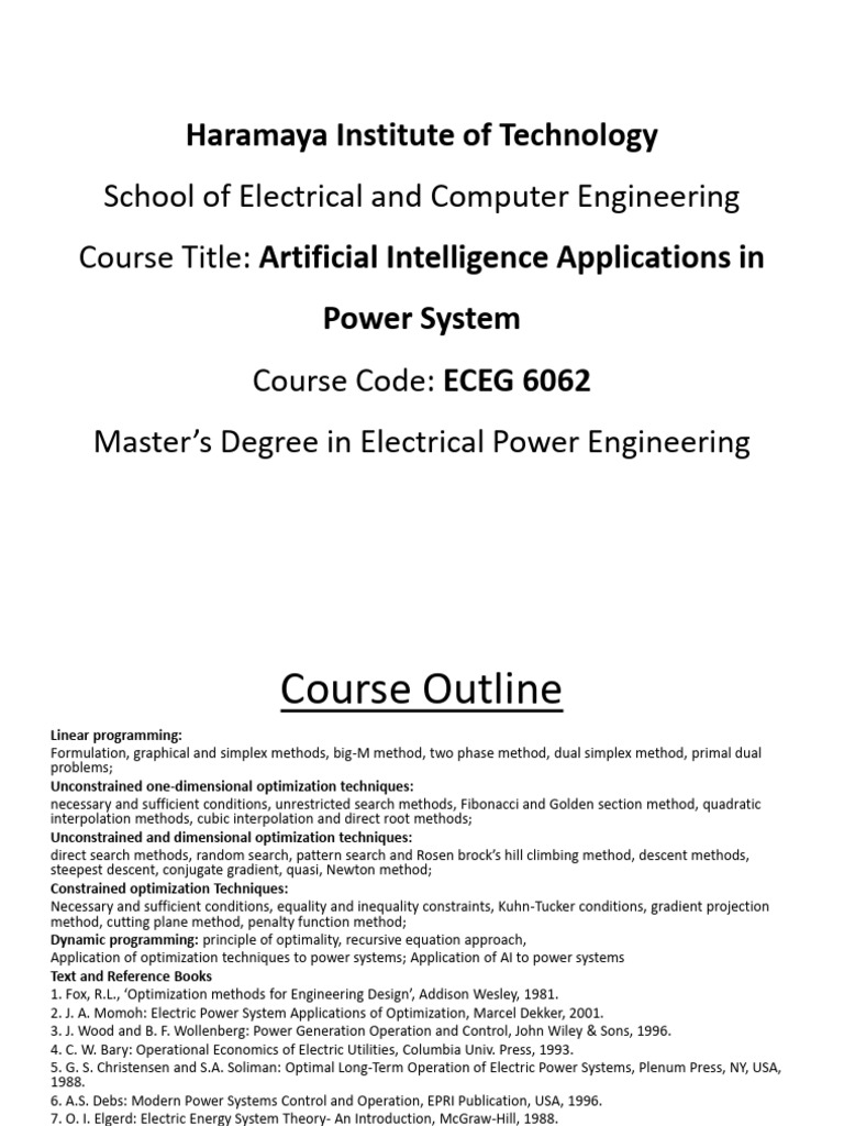 2. J. A. Momoh: Electric Power System Applications of Optimization, Marcel Dekker, 2001.