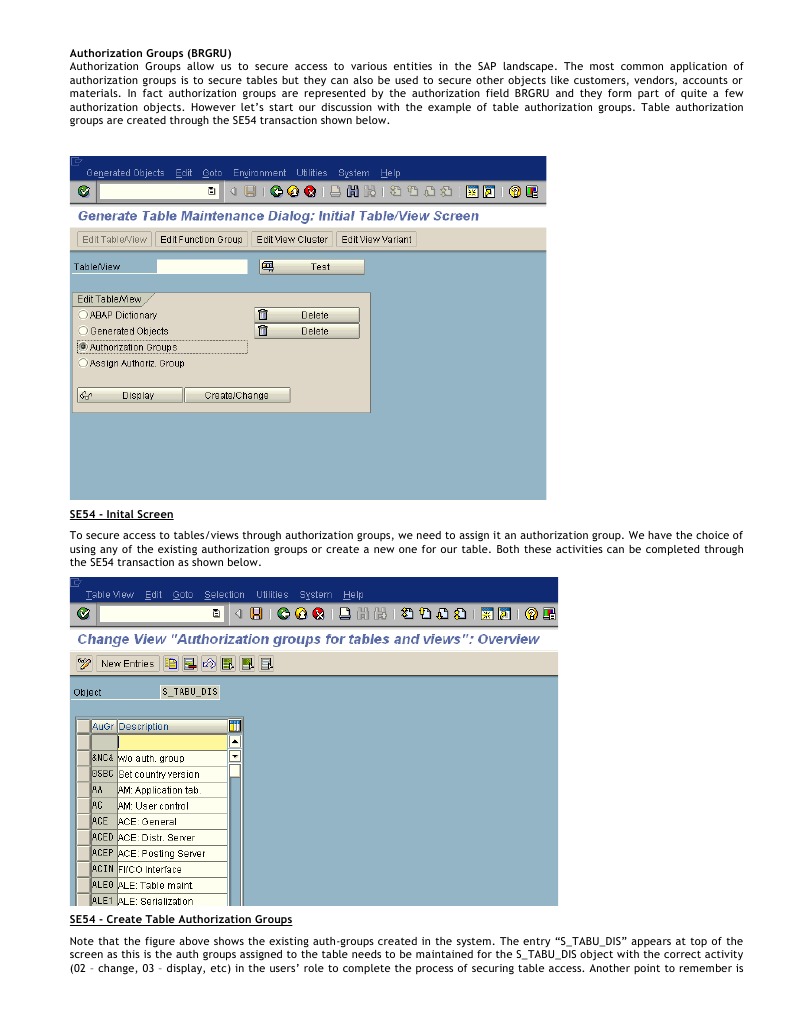 Authorization Groups (BRGRU) Authorization Groups allow us to secure access to various entities in the SAP landscape.