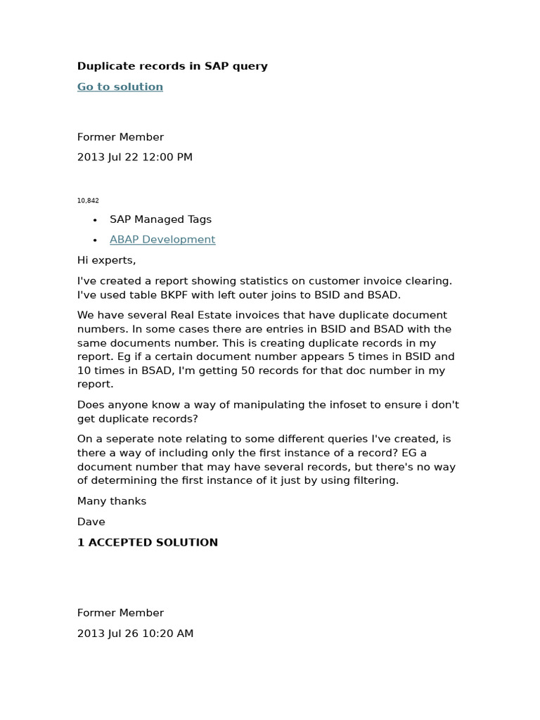 Duplicate records in SAP query