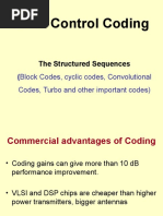 In a simplified way, this kind of redundancy is similar to running three computers for critical missions. If each computer has only 1% chance of making a mistake, the chance that all three will make a mistake is (0.01) 3=10-6 i.e. much less likely. Further if two computers agree, and one differs, the maximum likelihood is that one computer made a mistake, and the two remaining computers give the correct result. This fact can be used to make the most probably correct decision on what the answer should be e.g. dont fire the nuclear missiles, its only a flock of geese. The need for coding became all the more important in the use of cellular phones. In this case, the channel is the propagation of radio waves between your cell phone and the base station. Just by turning your head while talking on the phone, you could suddenly block out a large portion of the transmitted signal. If you tried to keep your head still, a passing bus could change the pattern of bouncing radio waves arriving at your phone so that they add destructively, again giving a poor signal. In both cases, the SNR suddenly drops deeply and the bit error rate goes up dramatically. So the cellular environment is extremely unreliable. If you didnt have lots of redundancy in the transmitted bits to boost reliability, chances are that digital cell phones would not be the success they are today (if anyone even saw fit to devise digital cellular systems in such a noisy environment). As an example, the first digital cell system, Digital Advance Mobile Phone Service (DAMPS) used convolution coding of rate 1/2 (i.e. double the information bit rate) and constraint length of 6. Current CDMA-based cell phones use spread-spectrum to combat the unreliably of the air interface, but still use convolution coding of rate 1/2 in the downlink and 1/3 in the uplink (constraint length 9). What CDMA is, is not part of this lab. You can ask the TA if you are curious.