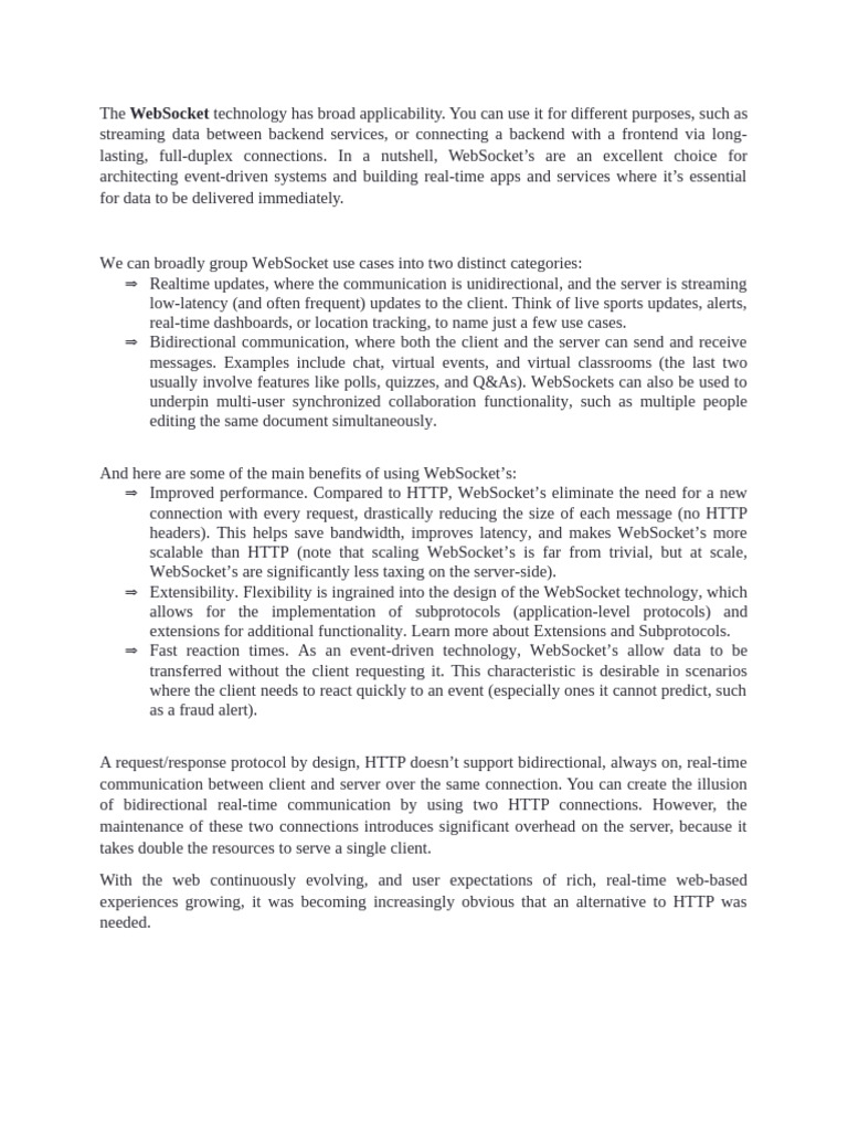 lasting, full-duplex connections. In a nutshell, WebSocket’s are an excellent choice for