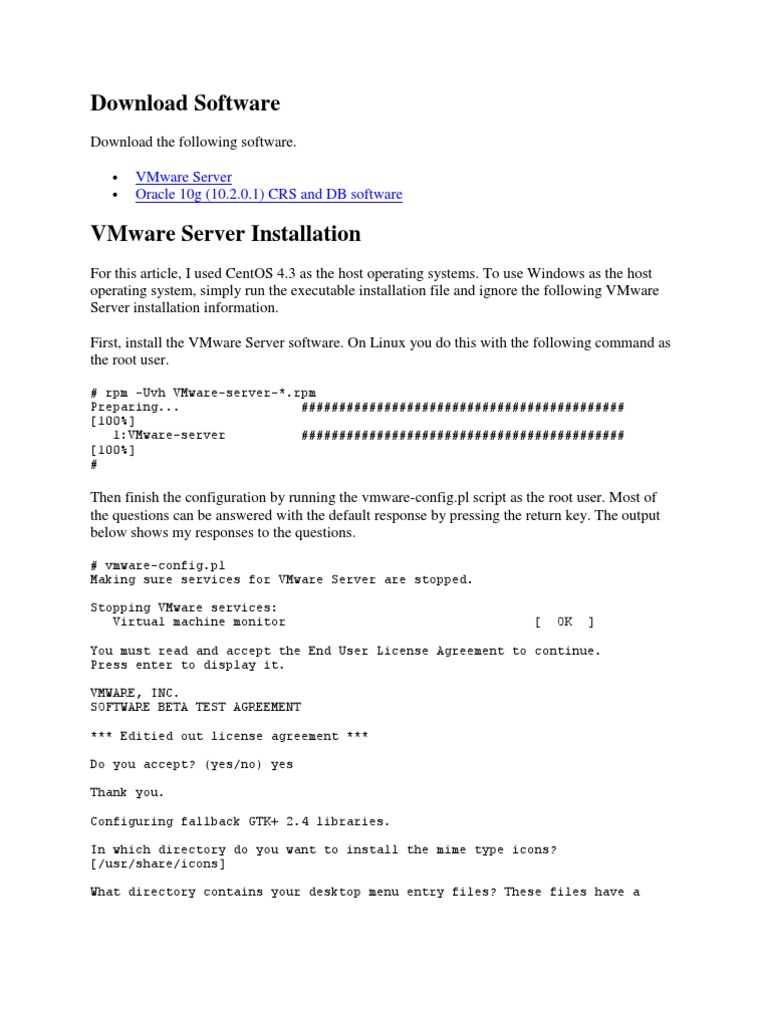 # vmware-config.pl Making sure services for VMware Server are stopped. Stopping VMware services: Virtual machine monitor [ OK ]