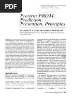 Prediction of Preterm PROM Because the clinical course of preterm PROM is often one of brief latency and increased infectious risk, it would be preferable to prevent it from occurring. In a large prospective study,7 the National Institute of Child Health & Human Development Maternal-Fetal Medicine Units Network found prior preterm birth and preterm birth due to preterm PROM to be associated with subsequent preterm birth due to preterm PROM. Those with a prior preterm birth at 2327 weeks had a 27.1% risk of preterm birth subsequently (P .001). Those with a history of preterm PROM had a 13.5% risk of preterm birth due to preterm PROM in a subsequent gestation (versus 4.1%, relative risk 3.3, P .01) and a 13.5-fold higher risk of preterm PROM at less than 28 weeks in the subsequent gestation (1.8% versus 0.13%, P .01). In a separate publication from this study the investigators found medical complications, work in pregnancy, symptomatic contractions, bacterial vaginosis, and low body mass index to be associated with preterm birth due to preterm PROM in nulliparas. Preterm PROM in multiparas was associated with prior preterm PROM, prior preterm birth due to preterm labor, and low body mass index. The presence of a short cervix (less than 25