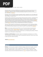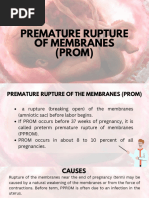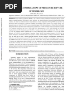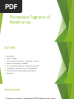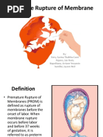 of survivors suffered major morbidities potentially associated with long-term morbidity (any of the following: grades 3 to 4 intraventricular hemorrhage, grades 3 to 4 retinopathy of prematurity, necrotizing enterocolitis requiring surgery, oxygen dependence at 120 days or at discharge, or seizures). Current data specic to infants delivering after preterm PROM are not available. However, it has been found that perinatal sepsis is two-fold more common in the setting of preterm PROM than preterm birth after preterm labor with intact membranes.2 Denitions Premature rupture of the membranes is dened as spontaneous membrane rupture that occurs before the onset of labor. When spontaneous membrane rupture occurs before 37 weeks gestation, it is referred to as preterm PROM. The term latency refers to the time from membrane rupture to delivery. Conservative management is dened as treatment directed at continuing the