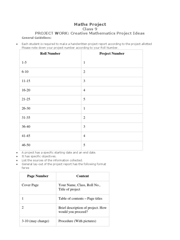 Class 9 PROJECT WORK: Creative Mathematics Project Ideas
