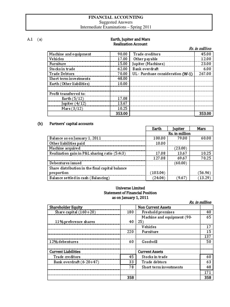 FINANCIAL ACCOUNTING Suggested Answers Intermediate Examinations Spring 2011