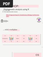 [1] 746 746 For small datasets it is also possible to nd all most parsimonious trees using a branch and bound algorithm [3]. For datasets with more than 10 taxa this can take a long time and depends strongly on how tree like the data are. > (trees <- bab(subset(primates,1:10))) [1] "lower bound: 368" [1] "upper bound: 580" [1] "4 species added; 3 trees retained" [1] "lower bound: 391" [1] "5 species added; 15 trees retained" [1] "lower bound: 436" [1] "6 species added; 105 trees retained" [1] "lower bound: 482" [1] "7 species added; 945 trees retained" [1] "lower bound: 517" [1] "8 species added; 1612 trees retained" [1] "lower bound: 548" [1] "9 species added; 49 trees retained" [1] "lower bound: 572" [1] "10 species added; 1 trees retained" [1] "lower bound: 580" 1 phylogenetic trees