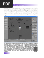 Blender has a variety of different window types and every window can be set to any type. For example, your initial screen has 5 windows (see previous page), the top one with the tool bars (Information window), the 3D window, and the bottom Timeline window. On the right, you have the Outliner and Properties windows. The button to change window types in the upper or lower left corner of each window. There are a lot of window types. The ones we are most interested in are: File Browser- usually comes up automatically as needed Info- menus, screen, scene and render engine options User Preferences- can be selected from the File menu Outliner- displays all objects in your scene and settings Properties- once called the buttons window, where most settings and scene options occur Logic Editor- game and real-time animation controls Node Editor- post-production effects for a scene Video Sequence Editor- compile final movies with images, effects and sounds UV/Image Editor- setting textures for games and movies Graph Editor- replaces IPO window- displays animation data Timeline- animation timeline with display and record controls 3D Window- your basic 3D scene window to work in