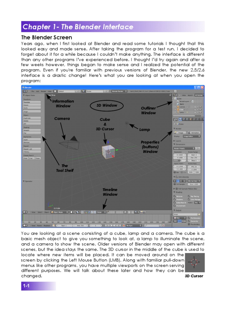 Years ago, when I first looked at Blender and read some tutorials I thought that this looked easy and made sense. After taking the program for a test run, I decided to forget about it for a while because I couldnt make anything. The interface is different than any other programs Ive experienced before. I thought Id try again and after a few weeks however, things began to make sense and I realized the potential of the program. Even if you're familiar with previous versions of Blender, the new 2.5/2.6 interface is a drastic change! Heres what you are looking at when you open the program: