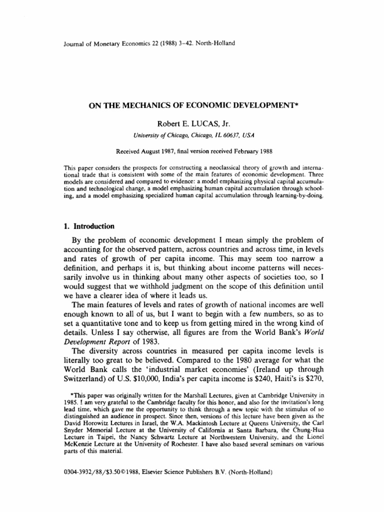 4 R. E. Lucas, Jr., On the mechanics of economic development