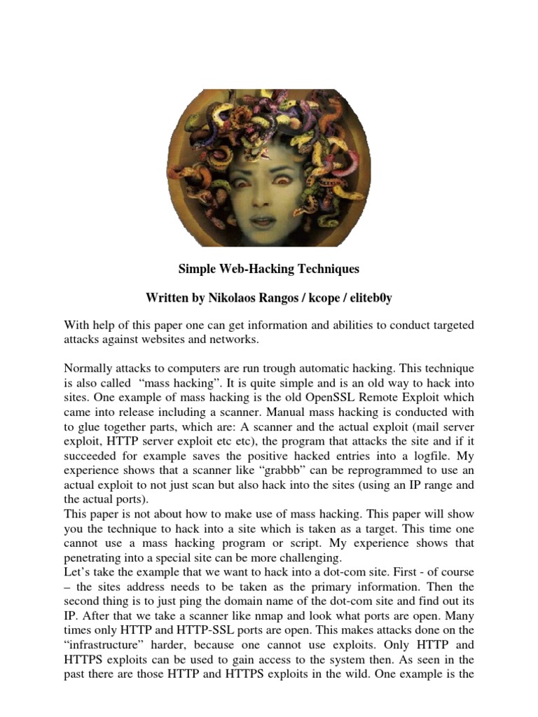 sites. One example of mass hacking is the old OpenSSL Remote Exploit which
